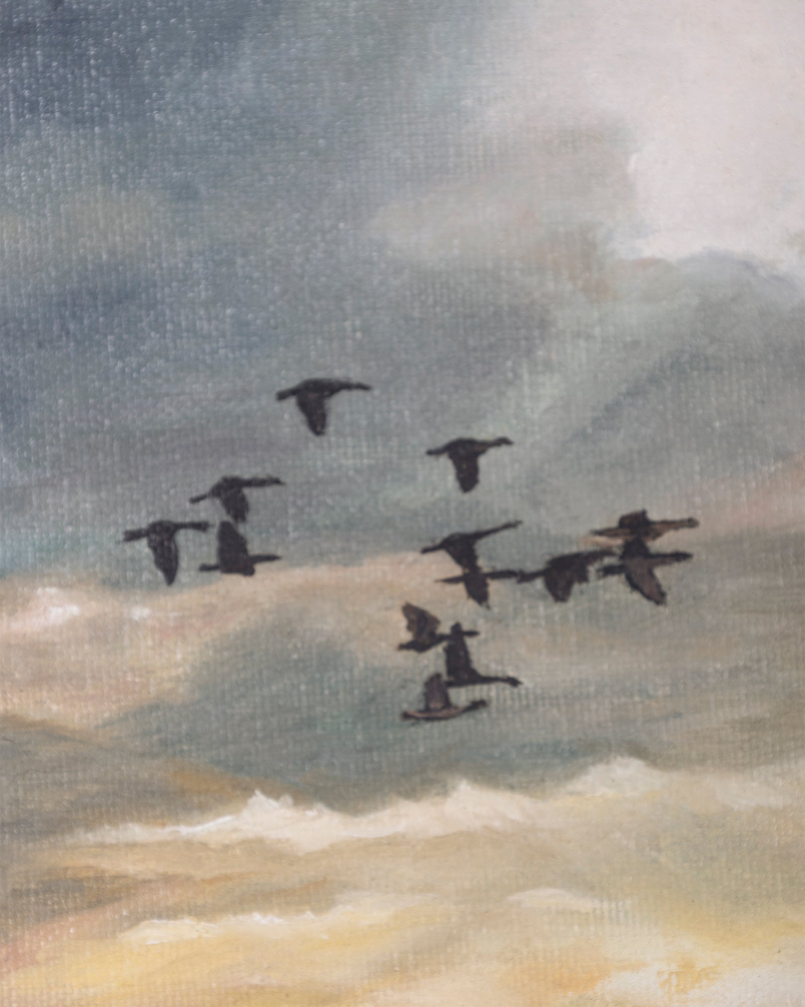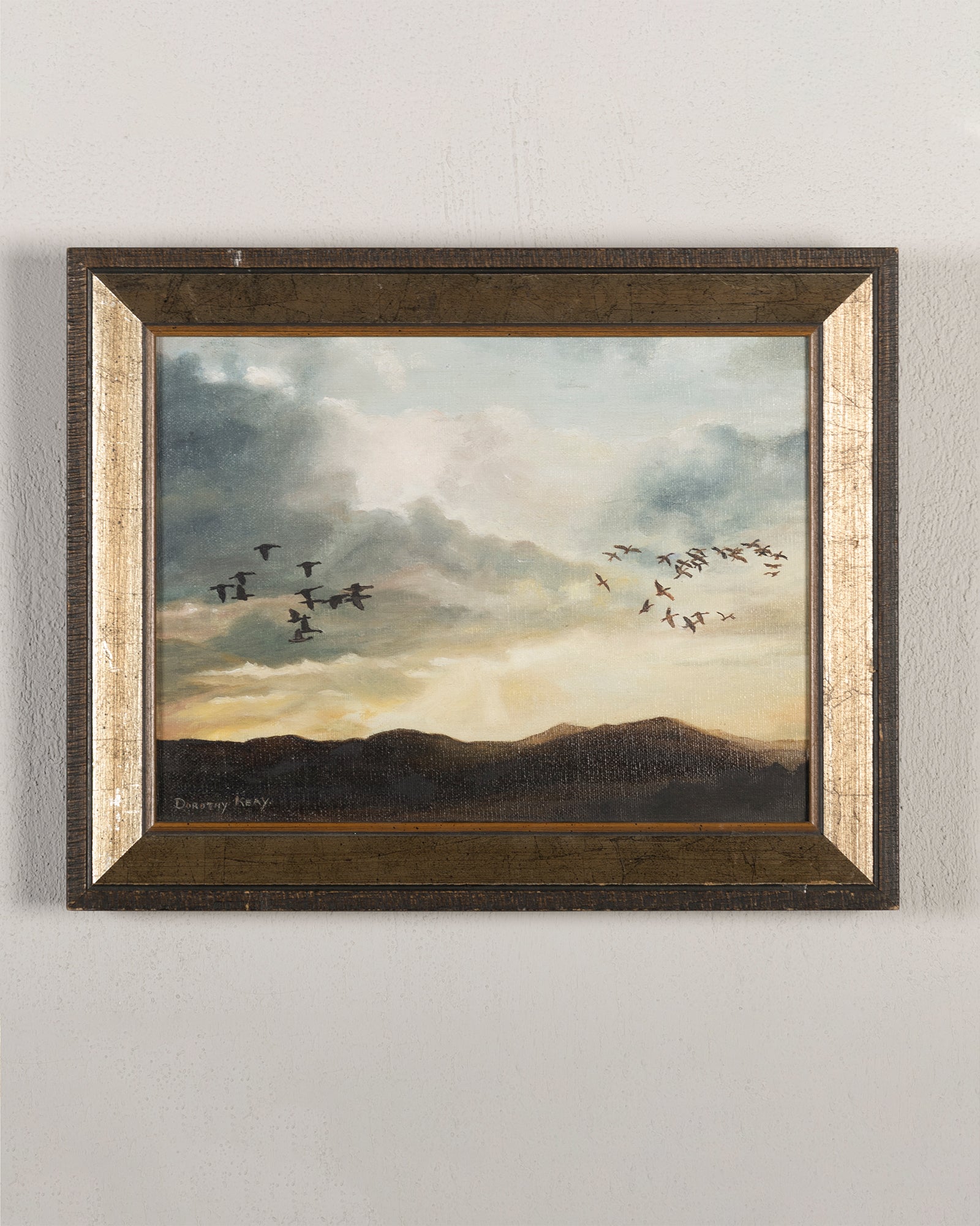 Atardecer con Aves es una obra única, realizada en óleo sobre lienzo y enmarcada en madera maciza. Cuidadosamente curada por nosotros, esta pieza combina un acabado vintage con la fuerza del arte clásico, creando una composición versátil y elegante para cualquier espacio.