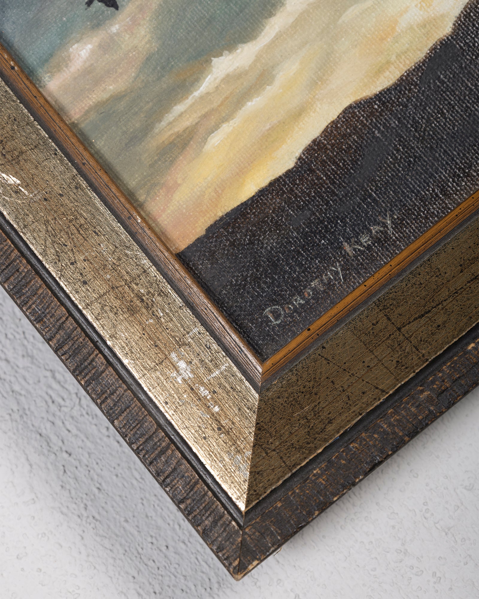 Estas obras vintage pueden presentar craquelado en la pintura, manchas en el lienzo, bordes suavemente desgastados, marcos con desprendimientos o faltantes y diversas señales de uso. Cada obra ha sido fotografiada con la mayor fidelidad posible, sin embargo, los colores pueden variar ligeramente según la iluminación.