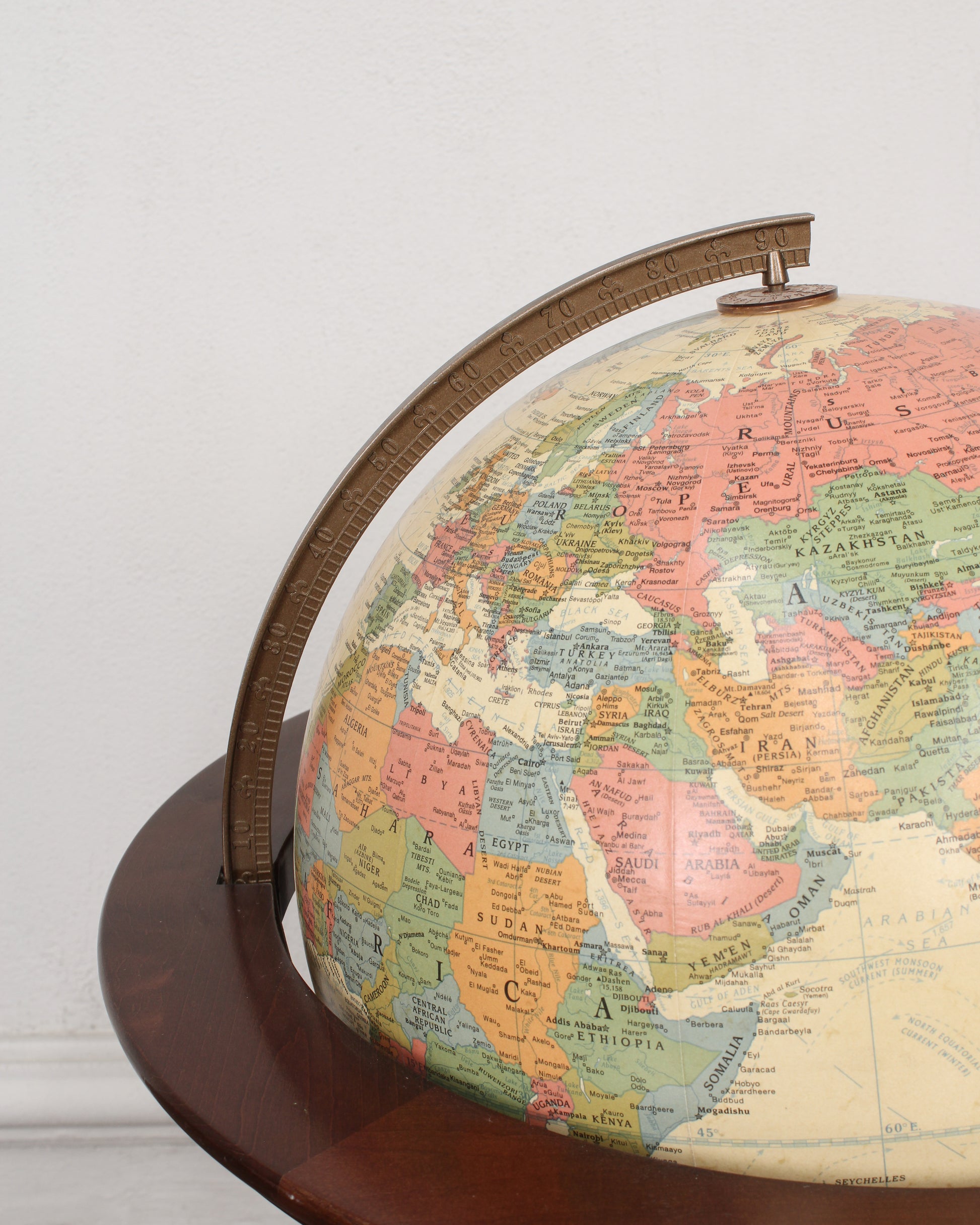 Cuidadosamente seleccionados por nuestro equipo, todos los globos terráqueos vintage pueden mostrar signos de envejecimiento como variaciones de color, desprendimientos en el papel, ligeras marcas o irregularidades en la esfera. Estas características no son defectos, sino testimonios de su autenticidad y del paso del tiempo.