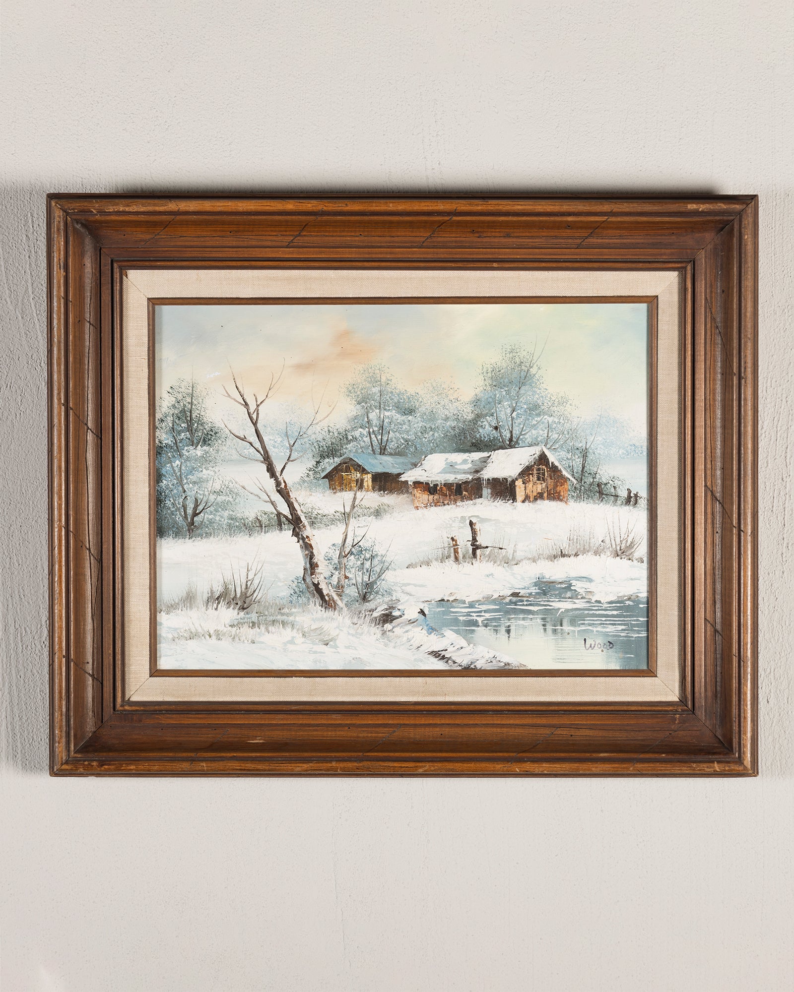 Paisaje con Nieve es una obra única, realizada en óleo sobre lienzo y enmarcada en madera maciza. Cuidadosamente curada por nosotros, esta pieza combina un acabado vintage con la fuerza del arte clásico, creando una composición versátil y elegante para cualquier espacio.