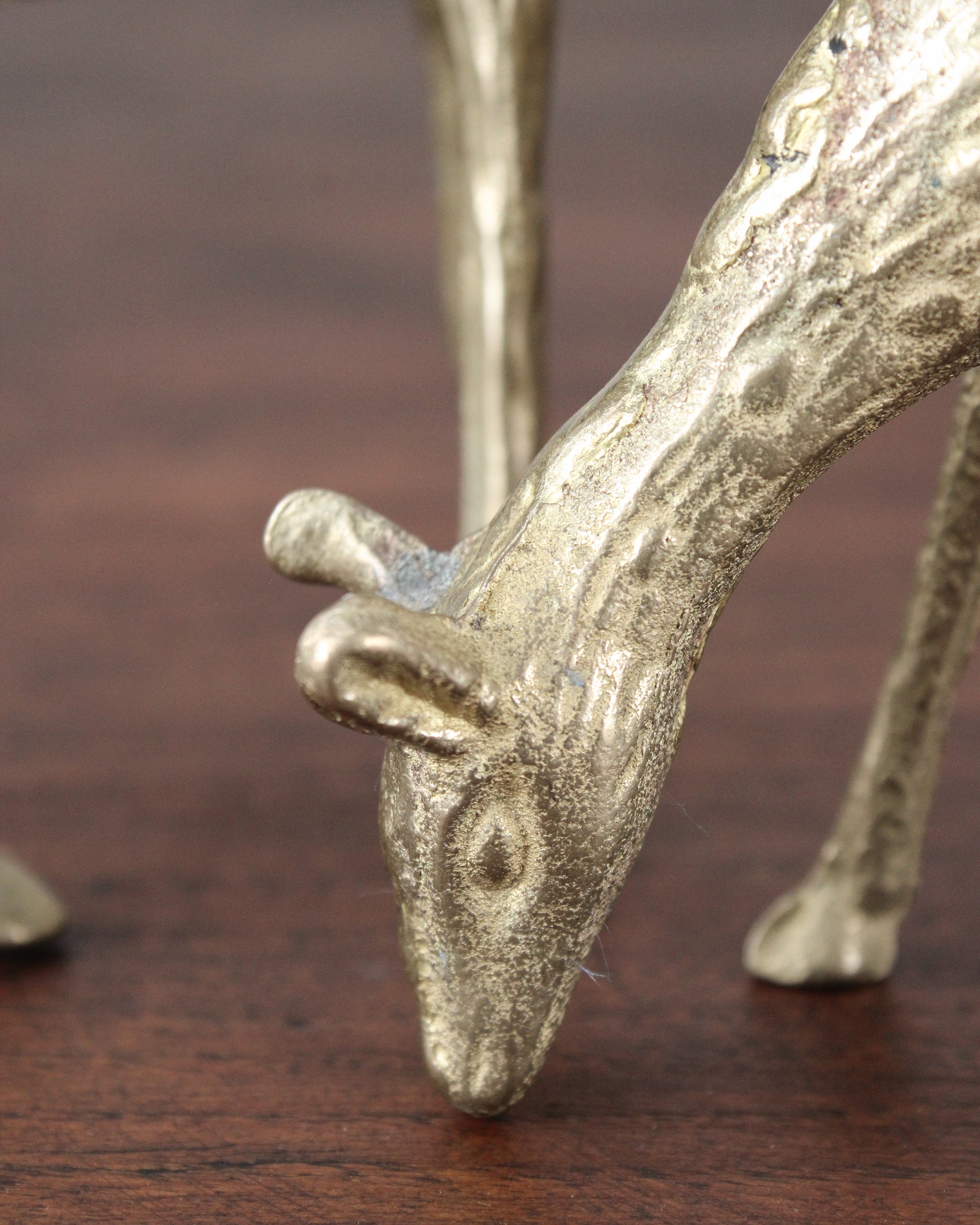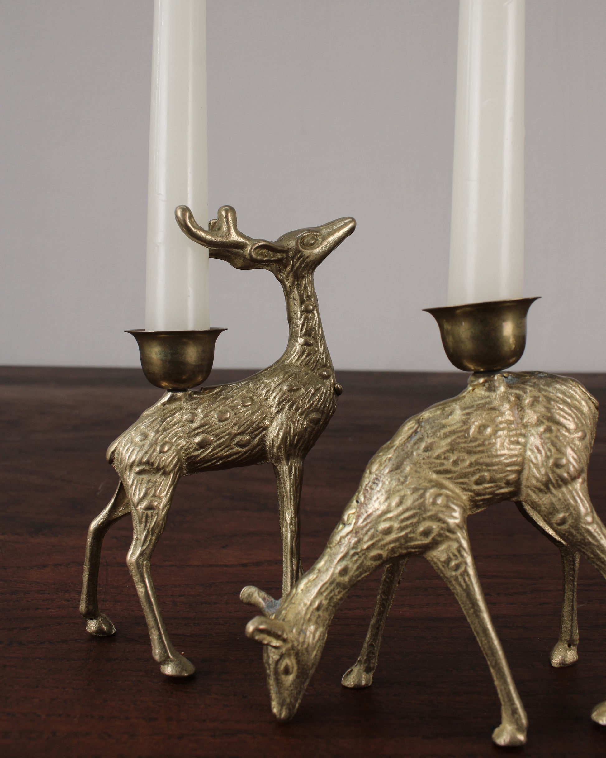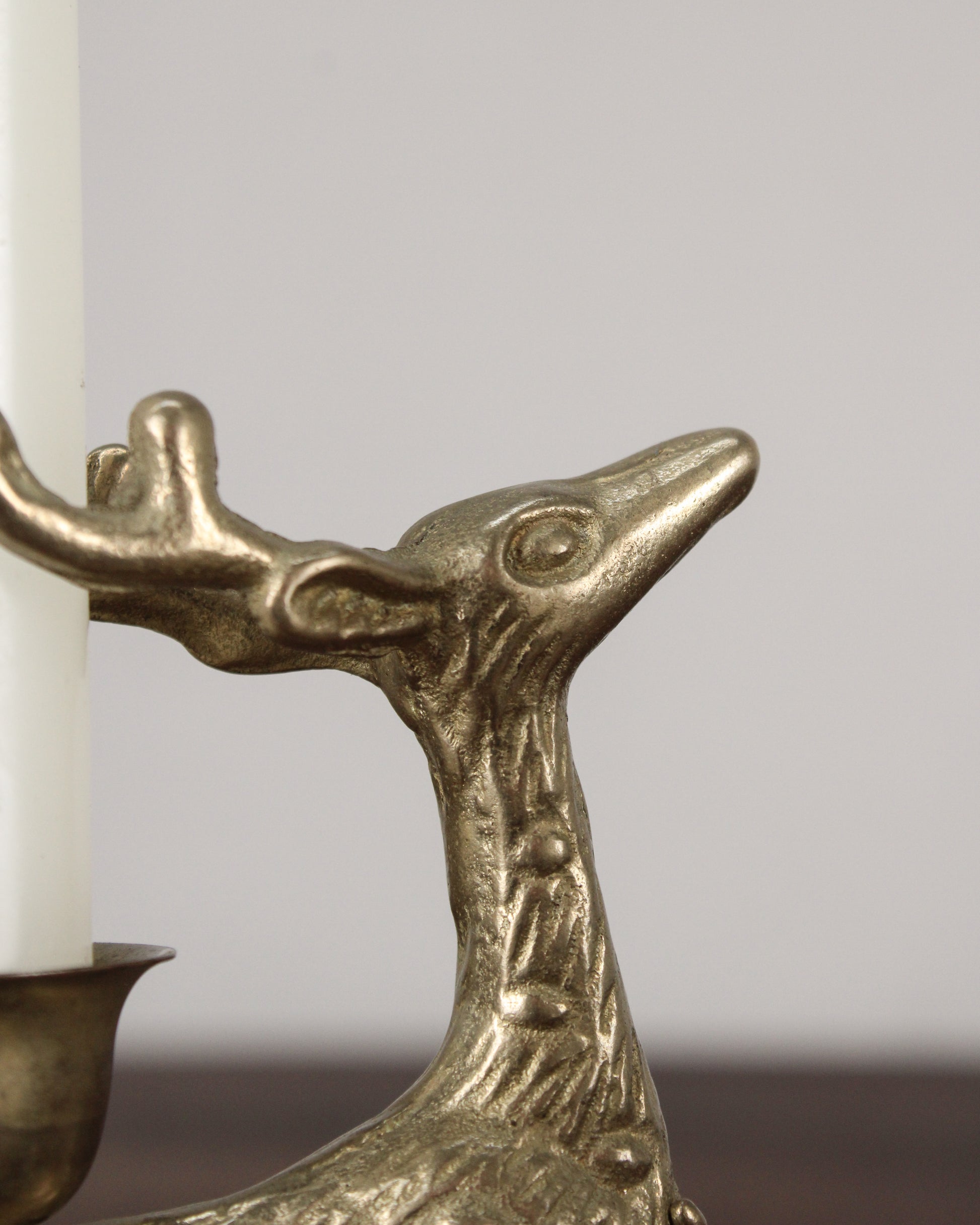 Añade un toque de elegancia a tu decoración con este par de figuras de ciervo para velas de latón macizo. Estas piezas se integrarán a la perfección en una composición con otros elementos decorativos, como libros y un pequeño jarrón. Los intrincados detalles y la belleza atemporal de estos candelabros aportan carácter y elegancia a cualquier hogar.